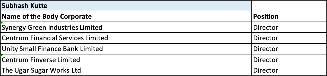 During his stewardship, the Bank has overcome enormous challenges which included the raising of Capital funds to the tune of 300 crores. He has an experience of four decades in the field of banking. He holds a bachelor's degree in commerce. Mr. Kutte acts as an “Advisor” to Ghatge Patil Industries Limited. He currently serves on the Board of several companies including Unity Small Finance Bank Limited and Synergy Green Industries Limited.